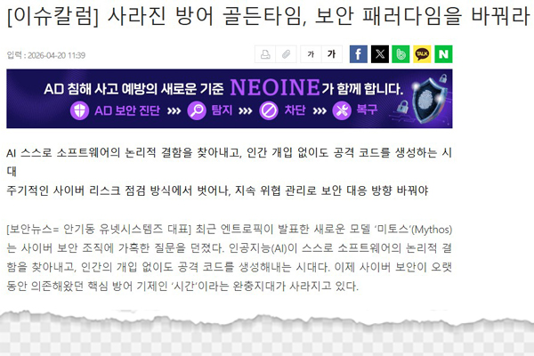 언론보도 + [2026 주목! 보안기업] 유넷시스템.. [2025 하반기 Best Goods] 유넷시.. 화이트 해커가 기업 직접 해킹 ….. Advancing Korea’s Cybersecurit.. 해커와 함께, 한국의 보안을 한 단..
